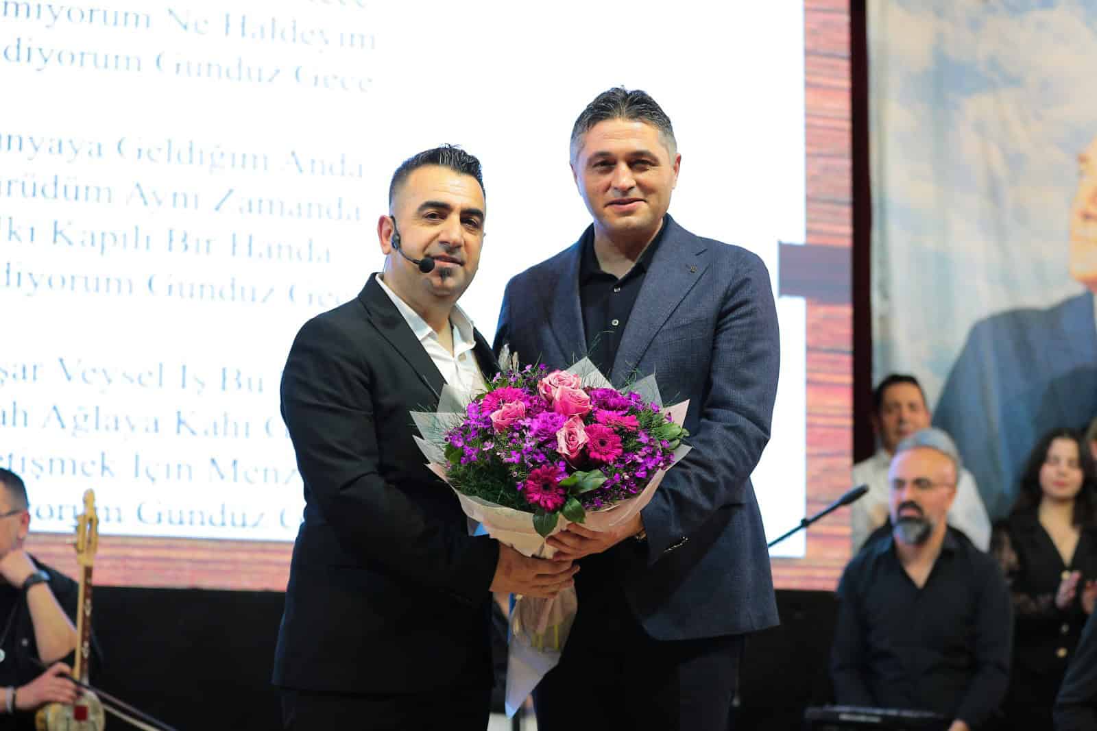 Konserin ilerleyen dakikalarında sahneye davet edilen Başkan Serkan Acar, Sanat Yönetmeni Ali Hikmet Gökçen’e teşekkür çiçeği takdim etti. Acar, yaptığı konuşmada, “Türk Halk Müziği Koromuz, büyük halk ozanımız Aşık Veysel’in eserlerini seslendirdi. Bu güzel akşamı bizlere yaşatan tüm sanatçılarımıza ve emeği geçenlere teşekkür ediyorum. En büyük hayalim, Aliağa’ya modern ve geniş bir kültür merkezi kazandırmak,” ifadelerini kullandı.