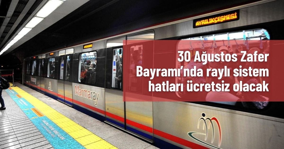 30 Ağustos Zafer Bayramı’nda Raylı Sistem Hatları Ücretsiz Olacak Marmaray, Başkentray, İZBAN ve metro hatları vatandaşlara ücretsiz hizmet verecek Ulaştırma ve Altyapı...