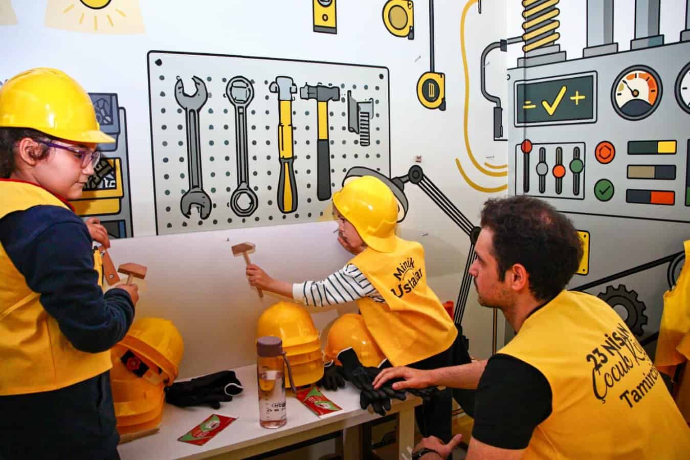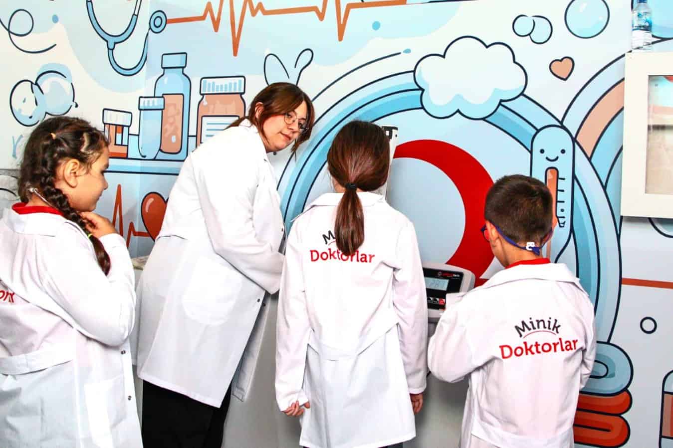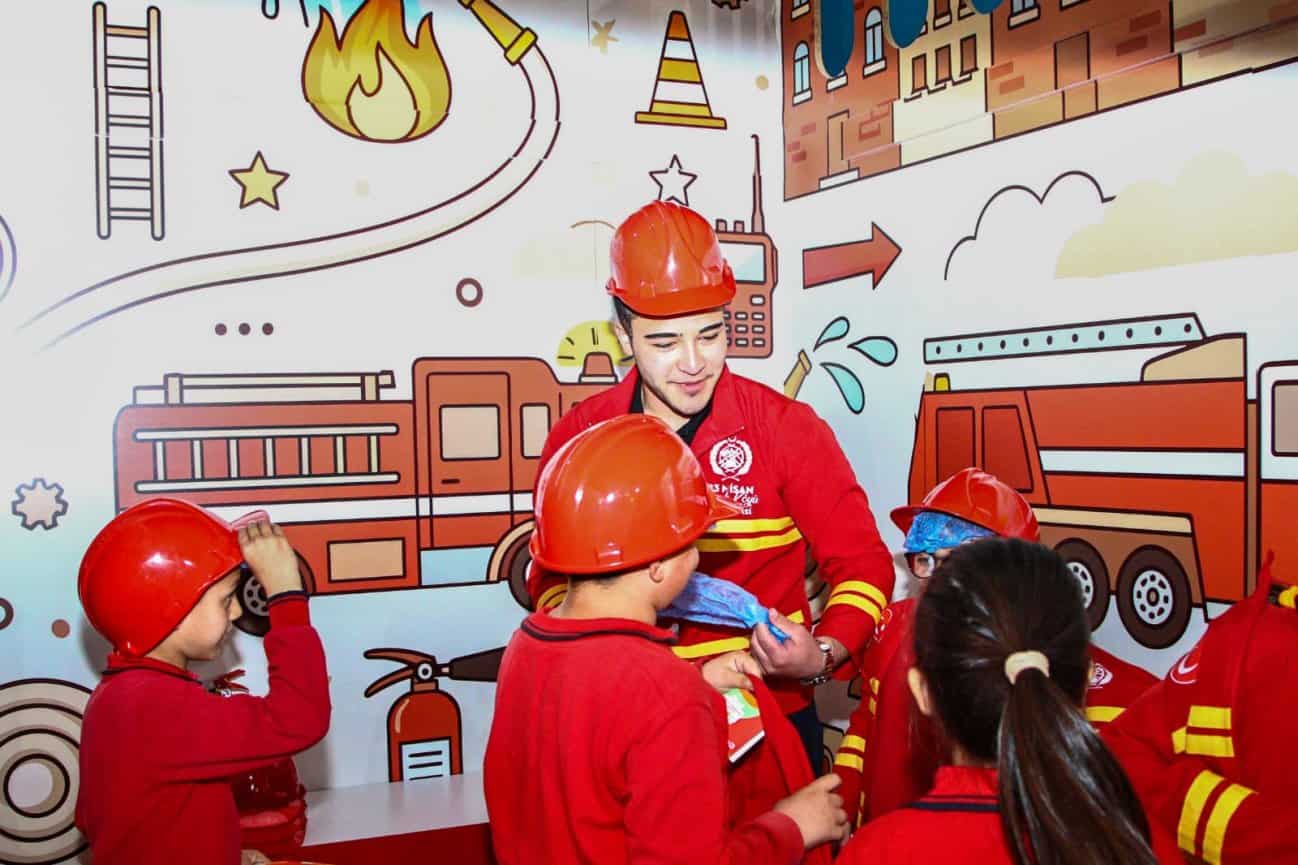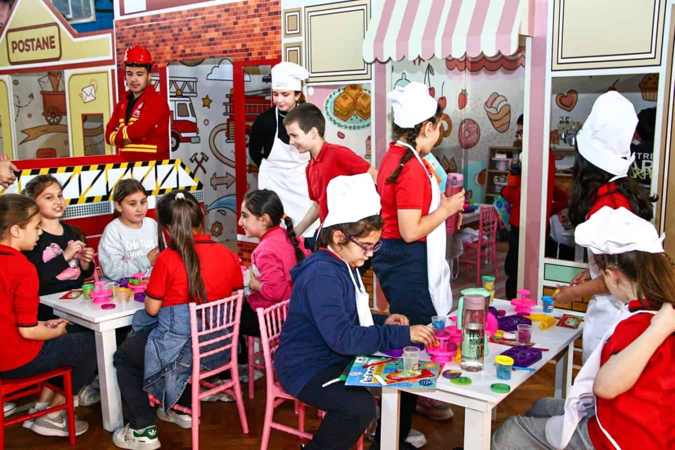 Çocuk Köyü’nde hastane, postane, itfaiye ve benzin istasyonu gibi farklı istasyonlar kuruldu. Öğrenciler; doktor, hemşire, polis, tamirci ve aşçı kostümleriyle meslekleri tanıma ve uygulamalı eğitim alma fırsatı buldu.