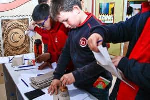 Katılımcı öğrenciler, kendileri için özel olarak hazırlanan çek defterlerini teslim aldı. Akvaryum alanına girişte, kitap ve balon alımlarında bu çekleri kullanarak para yönetimi konusunda uygulamalı deneyim elde ettiler.