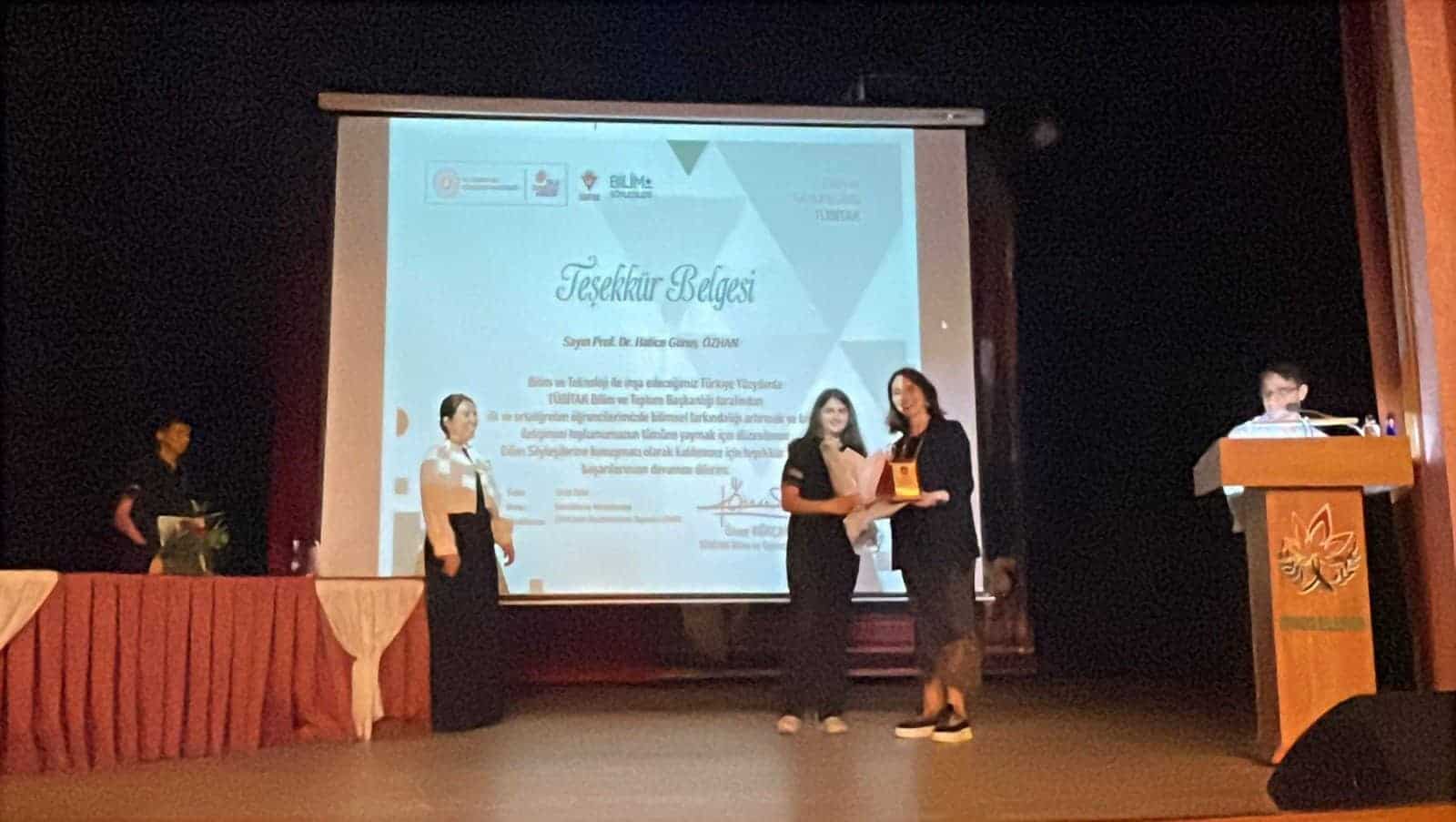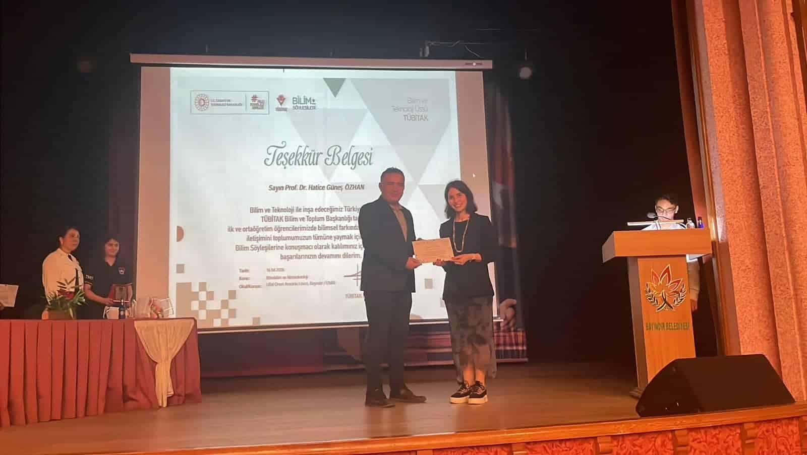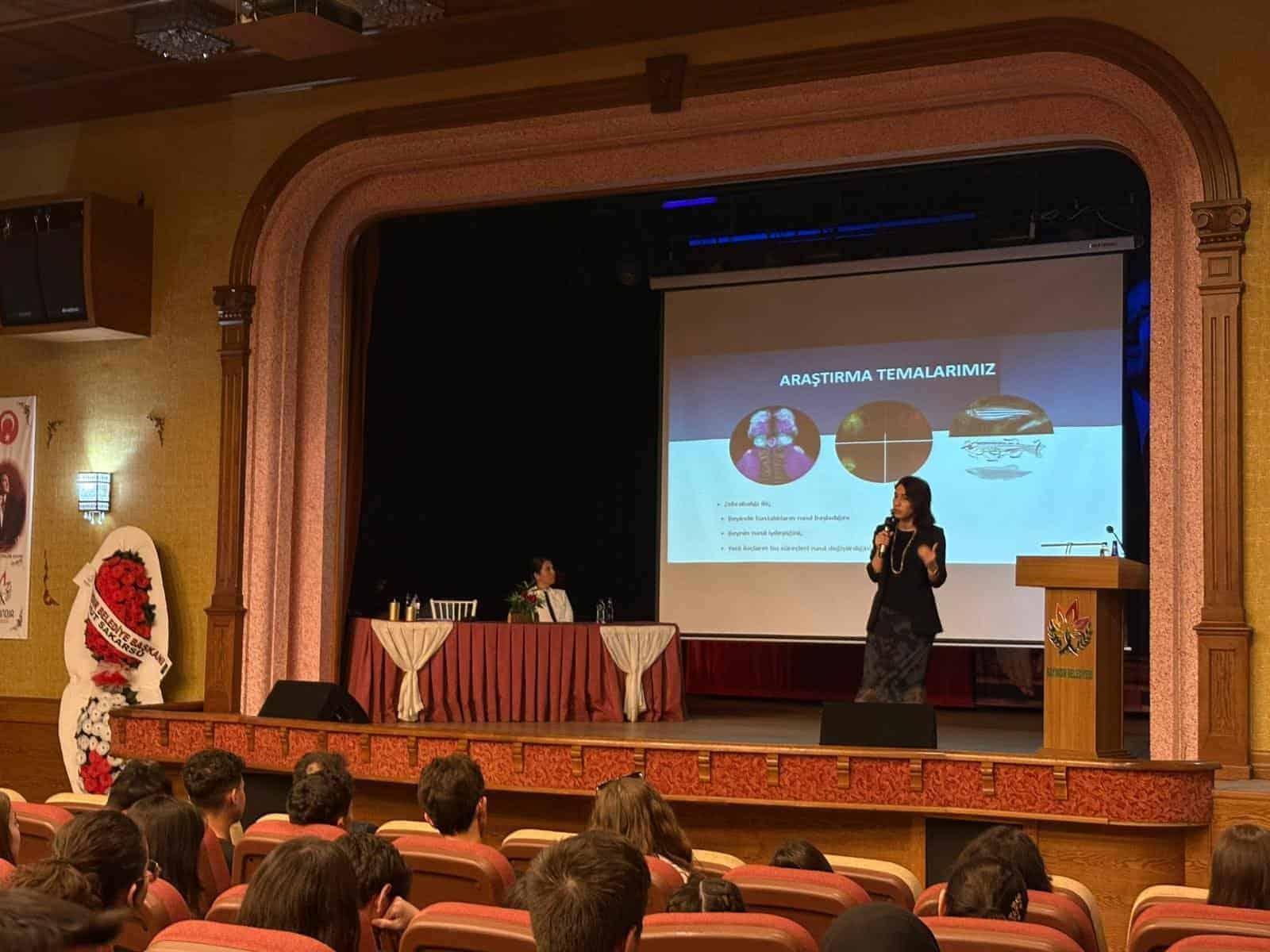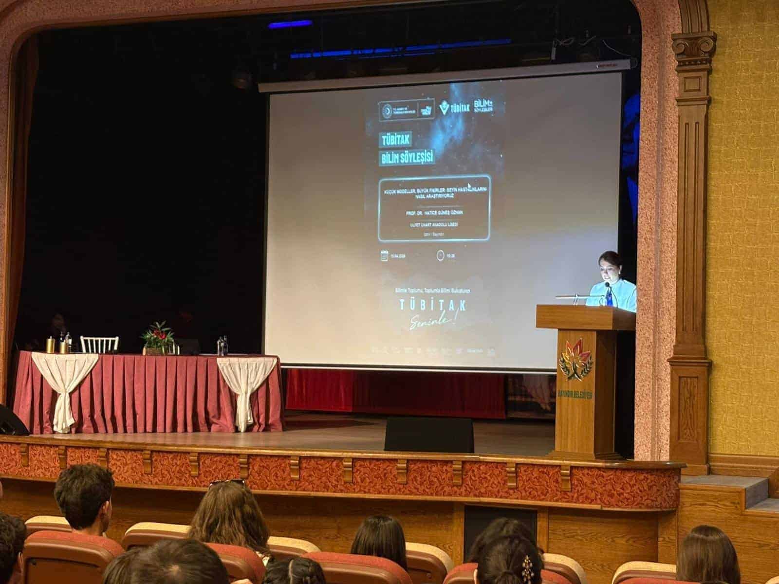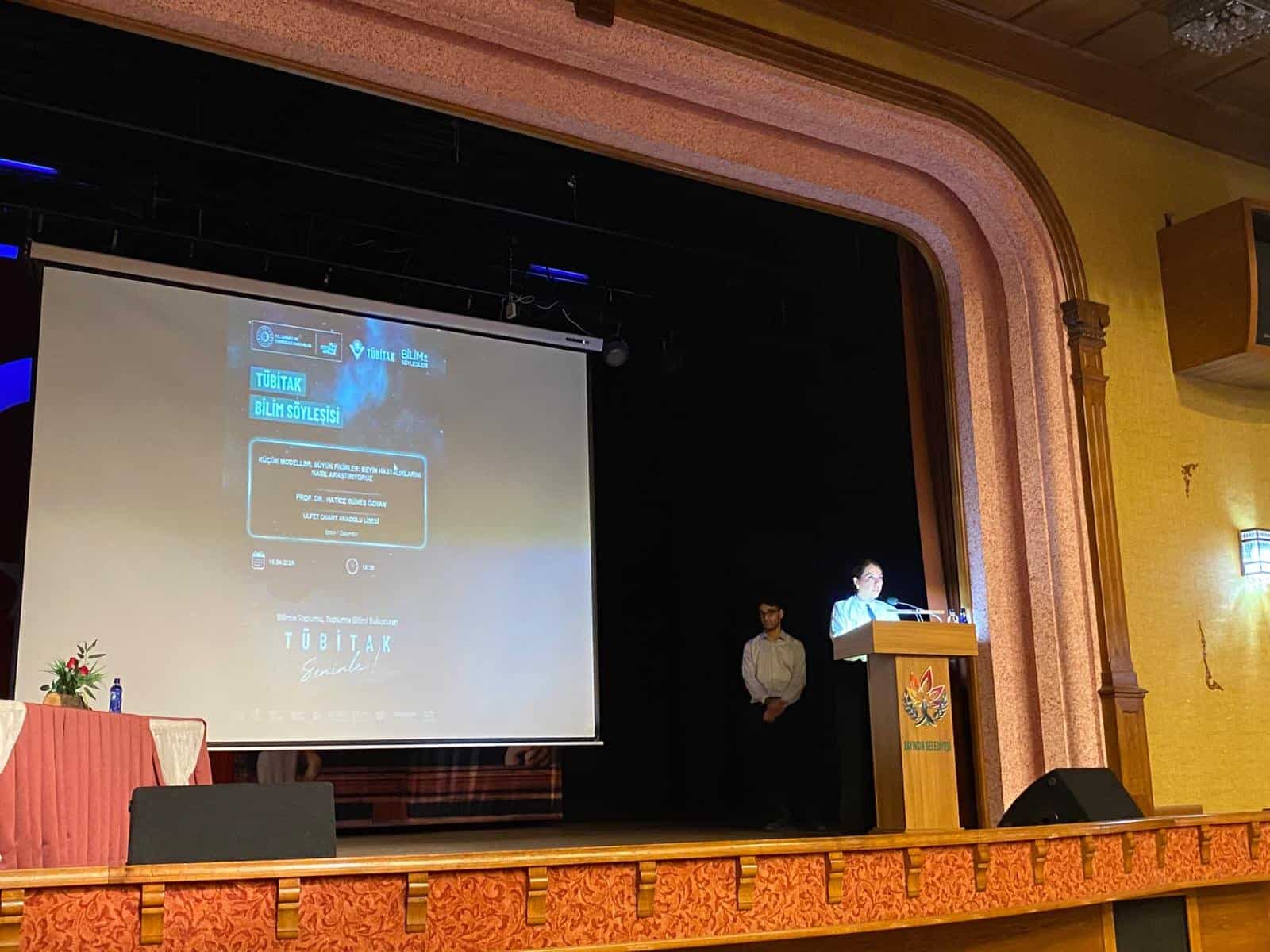 Etkinlikte İzmir Yüksek Teknoloji Enstitüsü Moleküler Biyoloji ve Genetik Anabilim Dalı Öğretim Üyesi Prof. Dr. Hatice Güneş Özhan, “Küçük Modeller, Büyük Fikirler: Beyin Hastalıklarını Nasıl Araştırıyoruz?” başlıklı bir sunum gerçekleştirdi. Sunumda, beyin hastalıklarının tedavisinde kullanılan deneysel teknikler ve yeni tedavi yöntemlerinin esasları hakkında bilgiler paylaşıldı. Öğrencilerin aktif katılımı ile interaktif şekilde ilerleyen programda, güncel bilimsel gelişmeler de ele alındı.